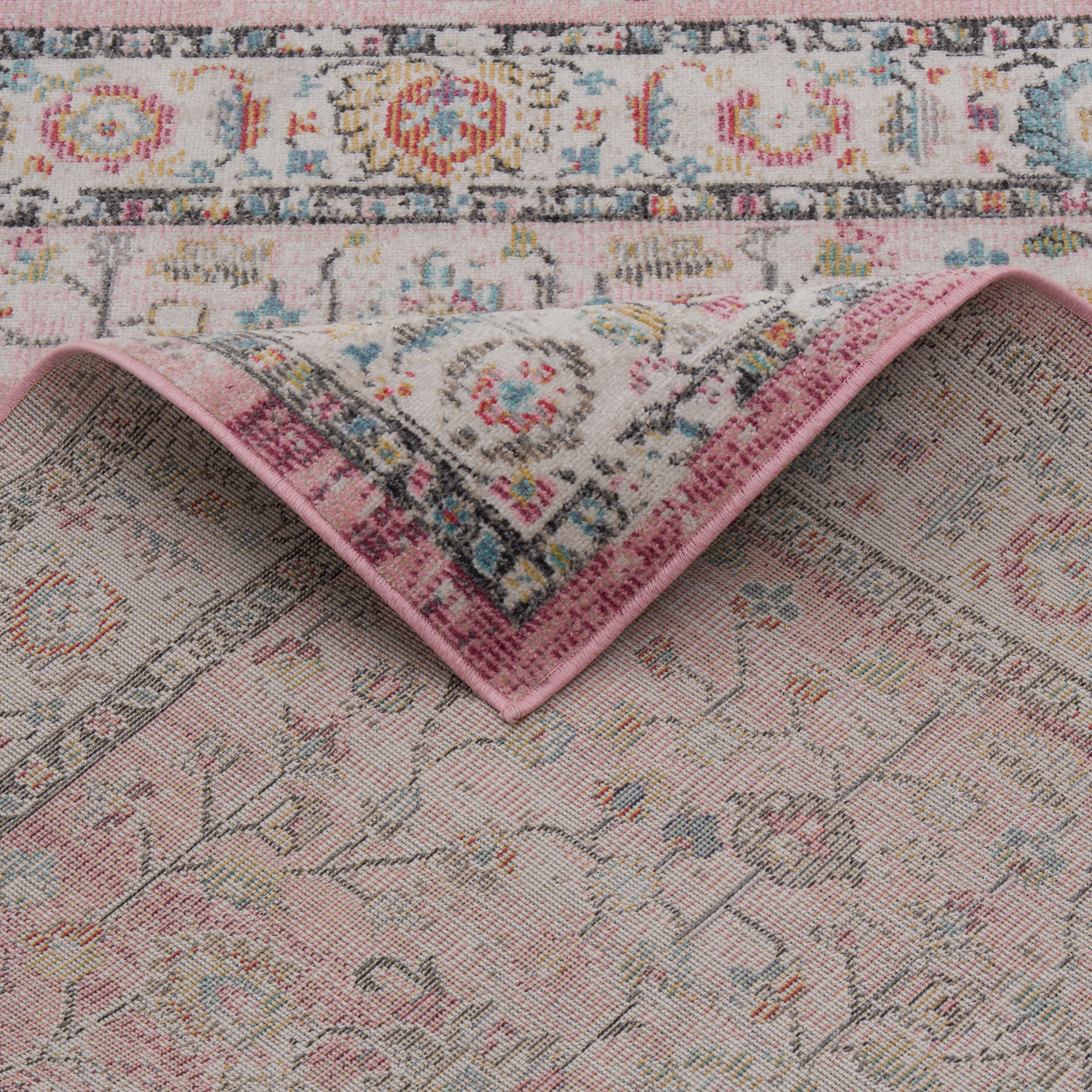 Indoor Outdoor Teppich Lagos Vintage Orient Rosa Creme